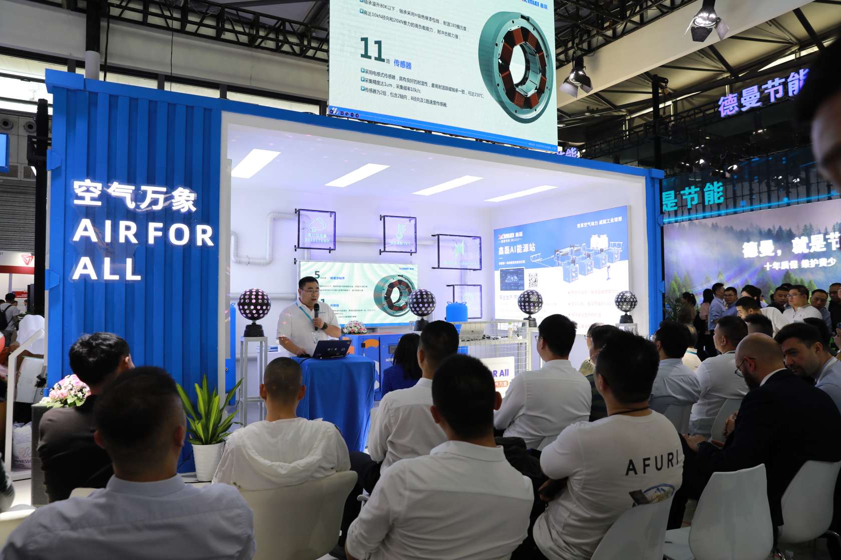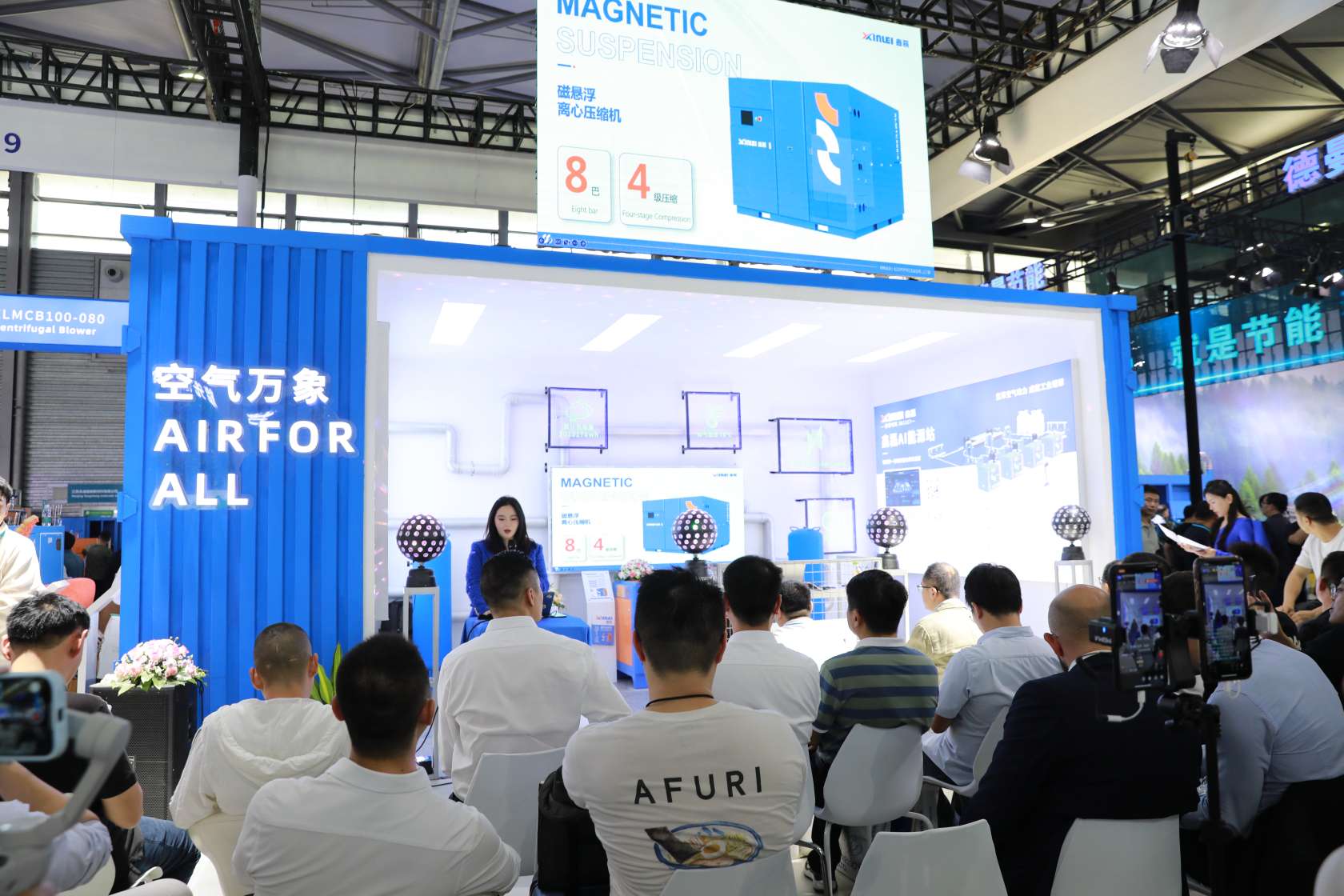 新品真8bar鑫磊磁懸浮離心壓縮機(jī)、AI能源氣站等科技和時(shí)尚的展位設(shè)計(jì)吸引了大量行業(yè)專家咨詢交流,他們紛紛駐足觀看并對(duì)這些設(shè)備和技術(shù)表示了濃厚的興趣。