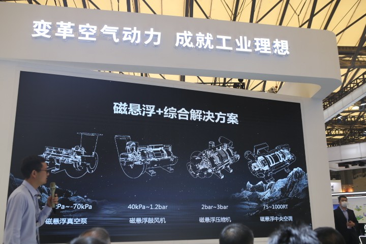 隨后沈博士重點介紹“磁懸浮+”綜合解決方案,鑫磊股份不斷從內突破,打破核心技術壁壘,推出自研自發(fā)的磁懸浮真空泵、磁懸浮鼓風機、磁懸浮壓縮機以及磁懸浮中央空調這四款拳頭產品并廣泛應用于造紙、醫(yī)藥、生物發(fā)酵等核心領域。